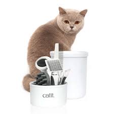 The Catit Shorthair Grooming Kit contains every tool you need to take care of your shorthaired cat’s coat. The cat brushes and combs are conveniently stored upright in a unique canister.