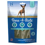 Do you love your dog but hate his stinky dog breath? With Bone-A-Mints®, you can love both! Bone-A-Mints® is a tasty treat that will help your pup get fresh breath instead of doggy breath. Bone-A-Mints® offer superior breath freshening performance, with five powerful and natural breath fresheners: peppermint, parsley, fennel, dill, and alfalfa. These tasty bones help whiten teeth by reducing plaque and tartar build-up as your four-legged friend chews. Bone-A-Mints® are made wheat free, corn free and soy free, so pups with sensitive stomachs can enjoy them too! Bone-A-Mints® are the most powerful breath freshening treats around. Say goodbye to stinky breath and hello to sweet, effervescent doggy kisses.