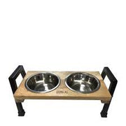 Cloe e Cluzo's double feeder bowl is made of mango wood and two stainless steel bowls offering your dog a stylish yet comfortable feeding station.