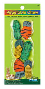 Our Wood Chews are safe, natural and fun treats for small pets. They are made of pine and have an enticing fruit flavor. Chew treats keep teeth trimmed and provide a fun activity that relieves cage boredom. Fits Ware Treat-K-Bob (item 03001). Additional shapes available.